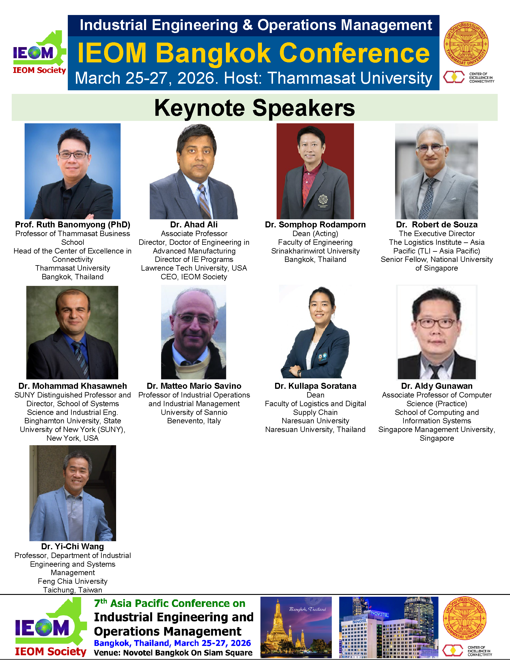 IEOM Society International is organizing the 7th Asia Pacific International Conference on Industrial Engineering and Operations Management, Bangkok, Thailand, March 25-27, 2026. The venue is at the Novotel Bangkok on Siam Square. The host is Thammasat University.